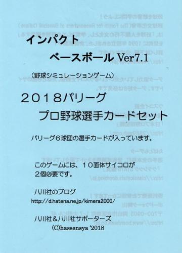 【商品説明】インパクトベースボールに使用される、2018年のパシフィックリーグの選手200名以上の成績がデータ化されたセットです。