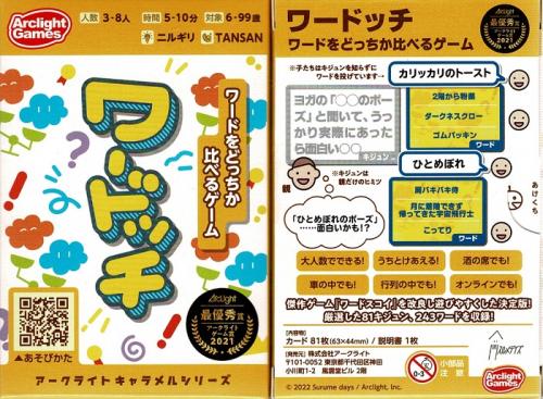 「アークライト・ゲーム賞2021」最優秀賞作品『ワードスコイ』を改良。厳選した81キジュン、243ワードを収録し、誰でも遊びやすくした決定版。