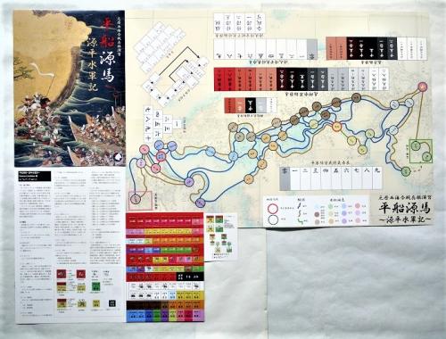 ユニット:約50艘(水軍) 約1000騎(武将)、カウンター:99個、マップ:1枚、シナリオ:4本、ルール:8p
