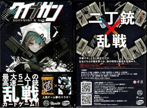【商品説明】5分で遊べるシューティング・カードゲーム『クイックショット!』のシステムを元に、2人対戦用高速二丁銃バトルカードゲーム『ガンナガン』の世界観と要素が追加された「二丁銃”乱戦„カードゲーム」が登場。