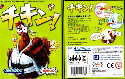 こうして誰かの山札がなくなったら、ゲーム終了です。最初に取り除いたカードを確認し、同じ数字のカードが手元に残っていたら、1枚につき-1点です。これを3回行い、マイナスポイントが一番多いプレーヤーが、臆病者の「チキン!」となります。