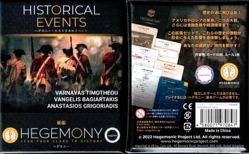 【商品説明】『ヘゲモニー:ヒストリカルイベント』は、ヘゲモニーを史実ともに味わえる拡張カードです。