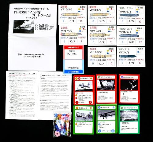 プレイヤーカードの山札が無くなればゲーム終了で、空母を撃沈、大破、中破によって得点し、合計得点の多いプレイヤーが勝利します。