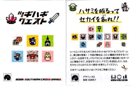 【商品説明】ハサミでじっさいにシートを切っていく、パズル&ドラフトゲーム『ツギハギキングダム』シリーズの第2弾です。