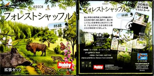 【商品説明】『フォレストシャッフル:林縁』拡張セットは、ヨーロッパの平原と森林の間の環境である「林縁」に生息する、セイヨウニワトコやスピノサスモモのような新たなカード種別の「低木」や、ヨーロッパバイソン、カササギ、チョウセンヤブキリ、ジギタリス、ミズハタネズミ、セイヨウミツバチ、メンフクロウなどの様々な動植物を追加することで、ゲーム展開にさらなる多様性をもたらす拡張セットです。