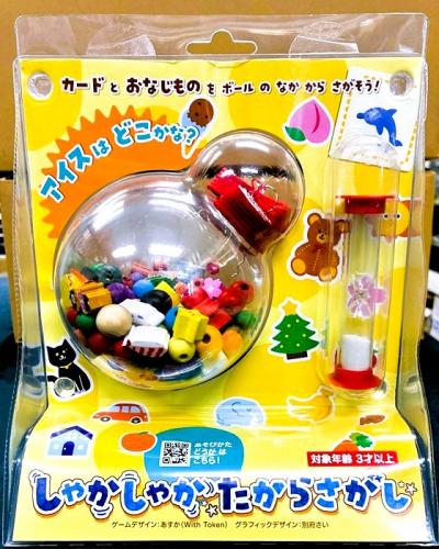 【商品説明】半透明のボールの中にたくさんの木ゴマが。カードをめくり、描かれているイラストと同じコマをボールの中から探しましょう。